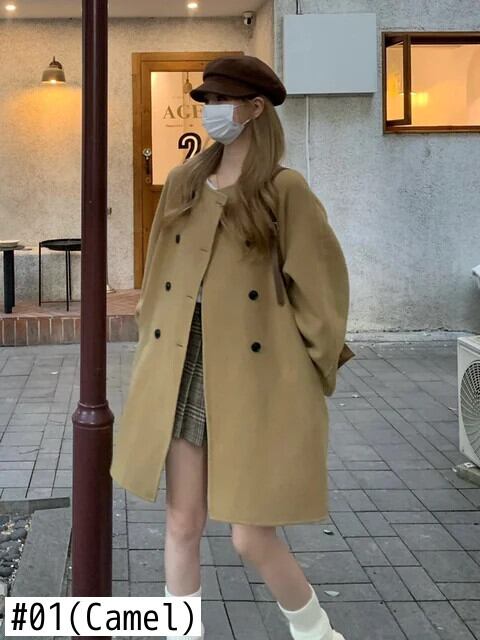 [EWQ] O ネック両面ウールコート無地オーバーサイズ暖かいアウター秋冬 16U6730 オータム 秋物 ウィンター 冬物 Oネック ソリッドカラー