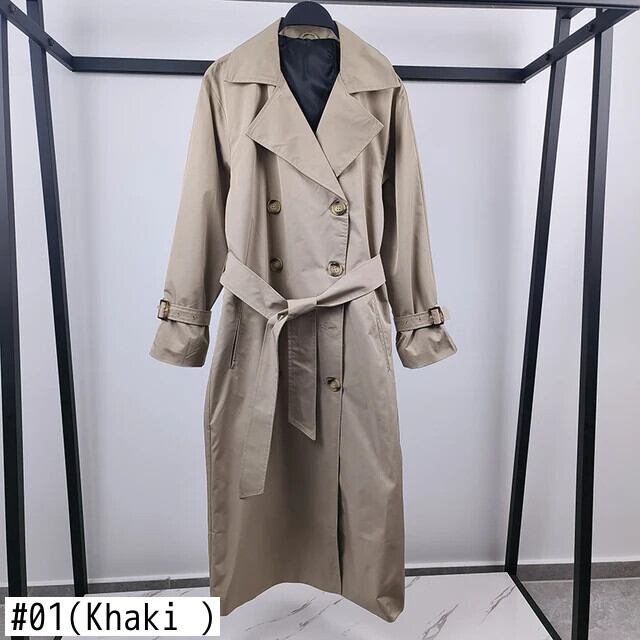 [EWQ] ダブルブレスト ラペル ウエストベルト レディース オーバーニー ロング トレンチコート ウインドブレーカー 秋冬 16U6040 オータム 秋物 ウィンター 冬物 ハーネス