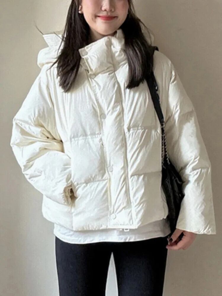 [EWQ] シンプル白ショート綿パッド入りジャケット厚手防寒着フード付きコート秋冬 6U6734 ホワイト コットン オータム 秋物 ウィンター 冬物