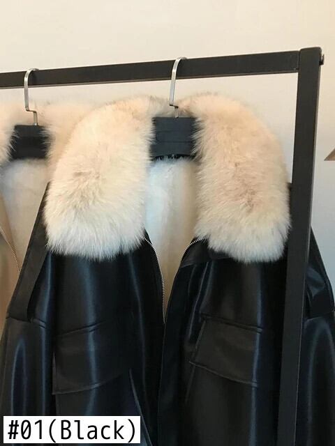 [EWQ] 冬豪華肥厚レザーコート取り外し可能フェイクファー襟生き抜く美しい暖かい冬ジャケット秋 オータム 秋物 ウィンター 冬物