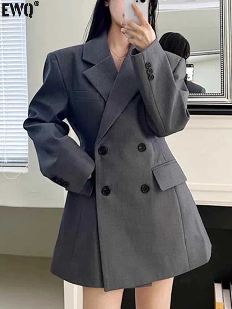 [EWQ] ラペルダブルブレストポケットスリム長袖スーツジャケットコート秋冬 6U6337 ロング オータム 秋物 ウィンター 冬物