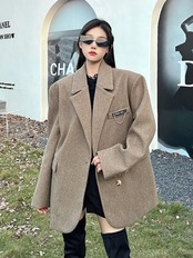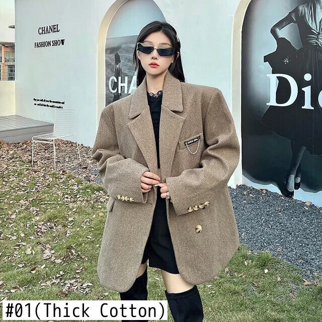 [EWQ] シングルブレストラペルウールスーツジャケット多用途厚手暖かいブレザーコート秋冬 16U6714 オータム 秋物 ウィンター 冬物