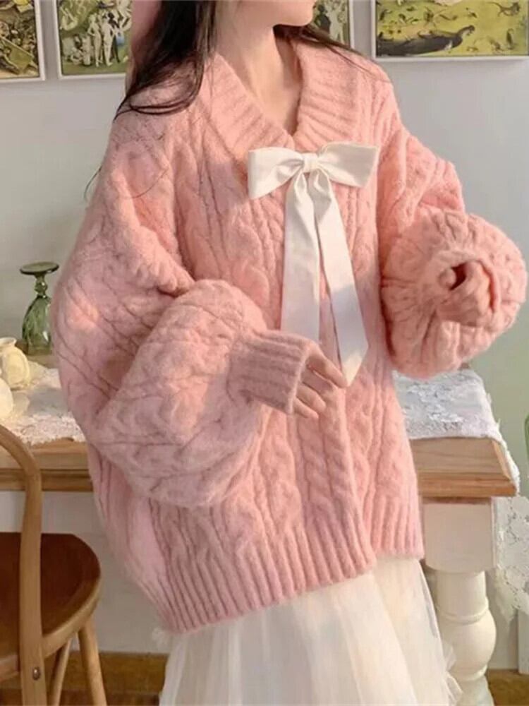[EWQ] 気質アップ Vネック ツイストストライプ プルオーバー ニットセーター レディース ゆったり 防寒着 ジャンパー 秋冬 16U6699 オータム 秋物 ウィンター 冬物