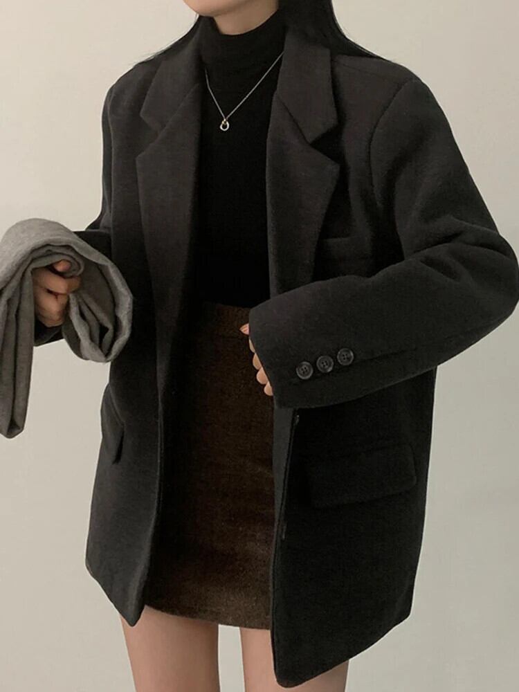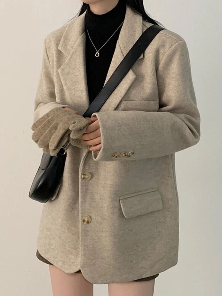 [EWQ] スーツ襟シングルブレスト緩い多用途厚く暖かいウールコートブレザージャケット秋冬 16U6620 オータム 秋物 ウィンター 冬物