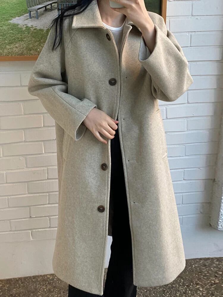 [EWQ] ラペルシングルブレストオールマッチ長袖ウールコートポケット厚手暖かいジャケットアウター秋冬 U6631 ロング オータム 秋物 ウィンター 冬物