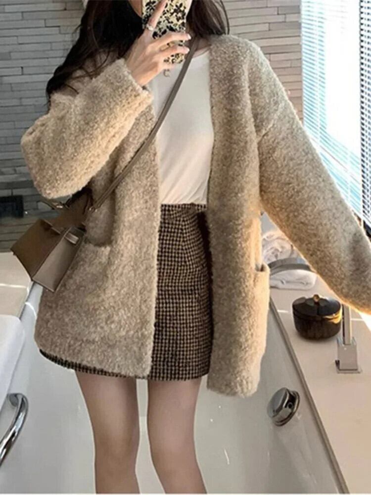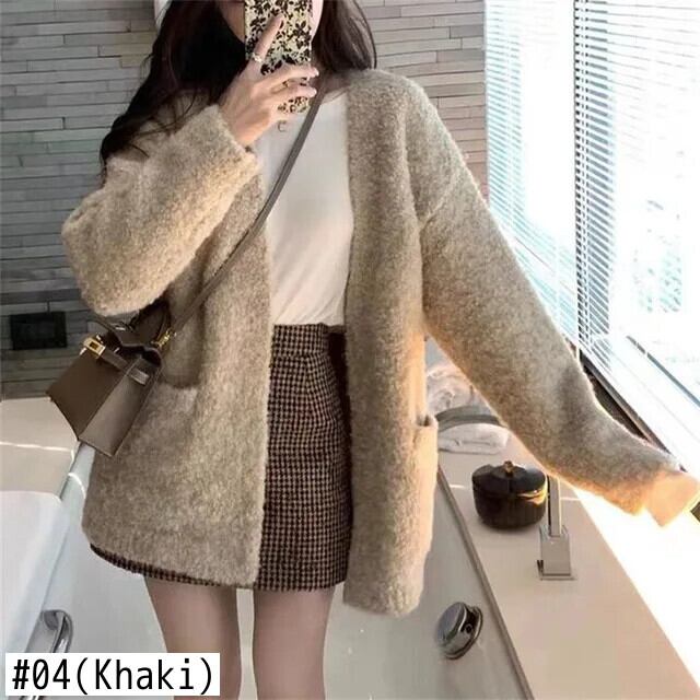 [EWQ] 無地 ニット カーディガン セーター ジャケット オールマッチ 長袖 レディース 防寒着 秋冬 16U6696 ロング オータム 秋物 ウィンター 冬物 ソリッドカラー