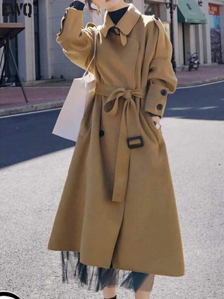 [EWQ] ラペルボタン レースアップ 両面ウールコート レディース 厚手 暖かい アウター 秋冬 6U6690 オータム 秋物 ウィンター 冬物
