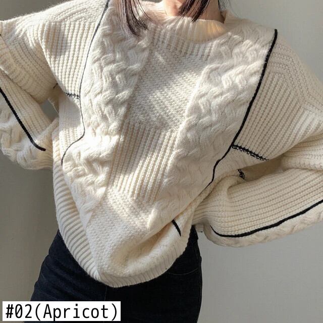 [EWQ] Oネックツイストストライプブライトラインゆったり編みプルオーバーセーターレディース厚手暖かいジャンパー秋冬16U6617 オータム 秋物 ウィンター 冬物