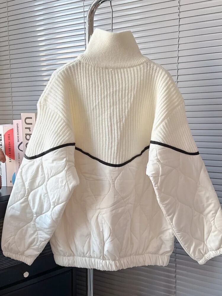 [EWQ] タートルネックジッパーパッチワークニットセーターキルティングスプライス綿パッド入りコート秋冬トップ A6285 コットン オータム 秋物 ウィンター 冬物
