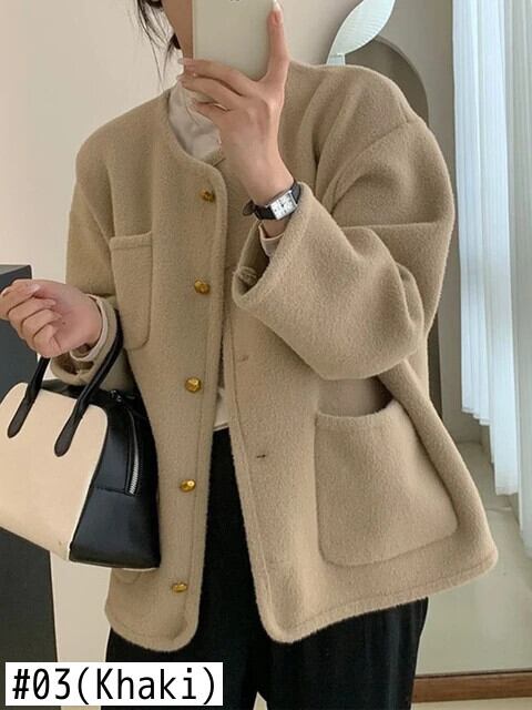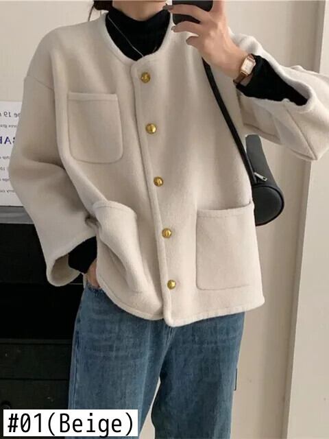 [EWQ] シンプル O ネック シングルブレスト カーディガン ジャケット レディース 無地 ウール ショートコート トップス 秋冬 16U6698 オータム 秋物 ウィンター 冬物 Oネック ソリッドカラー