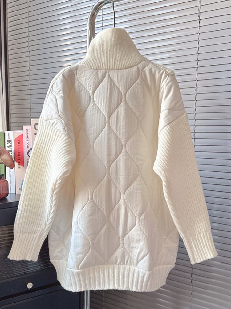 [EWQ] スタンドカラースプライシングニットジッパーセーターパッチワーク綿パッド入りカーディガンジャケット秋冬 23A6280 コットン オータム 秋物 ウィンター 冬物