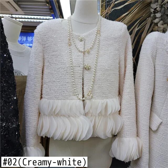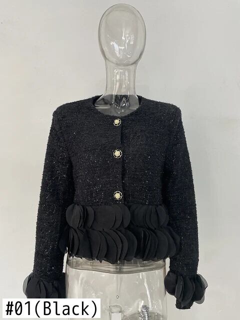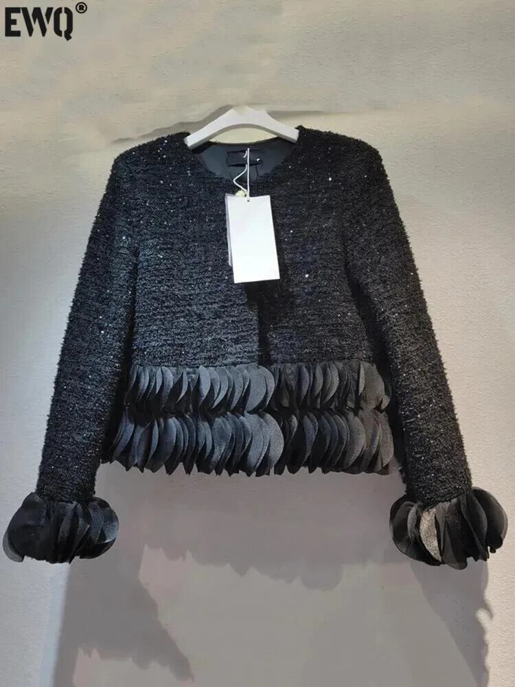 [EWQ] 長袖フリルパッチワークルーズアウタージャケット秋冬美しいスパンコールコート A5176 ロング オータム 秋物 ウィンター 冬物