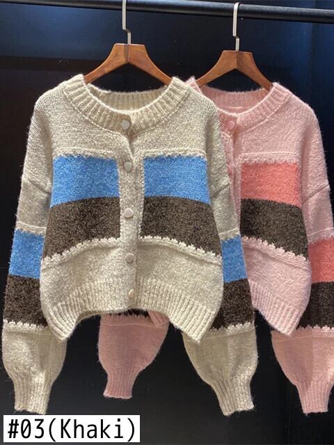 [EWQ] スプライスストライプシングルブレストニットカーディガンセーター暖かい長袖アウター秋冬 3A630 ロング オータム 秋物 ウィンター 冬物