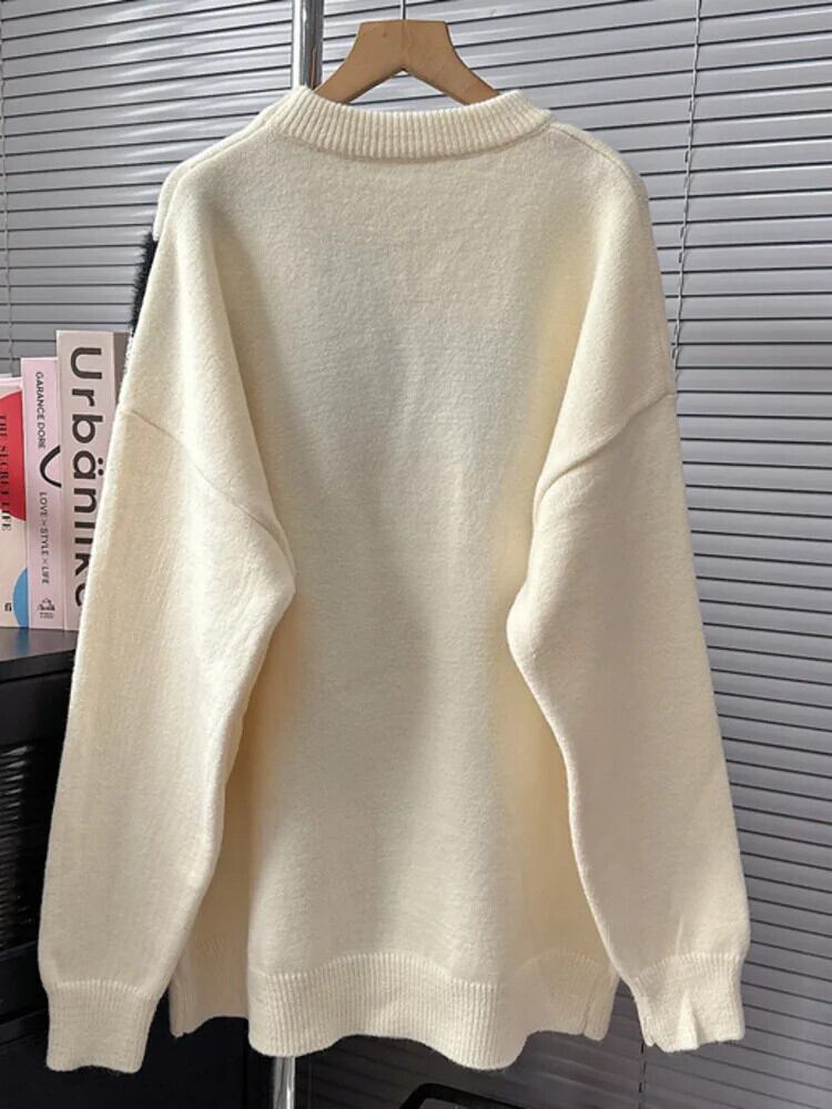 [EWQ] ベージュ レッド O ネック ニット プルオーバー セーター レディース 長袖 毛皮で覆われたスプライスされた厚手で暖かいジャンパー 秋冬 3A6287 ロング オータム 秋物 ウィンター 冬物 Oネック