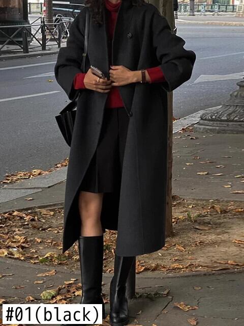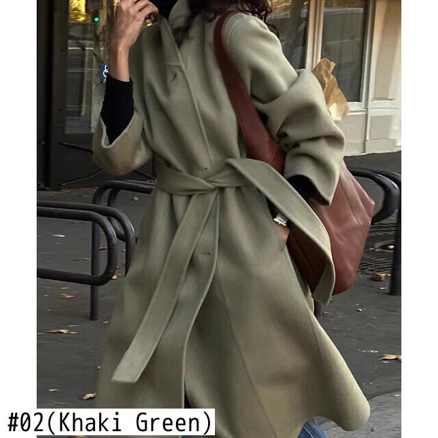 [EWQ] 冬ベルト付きウールコア長袖シングルブレスト気質生き抜くオーバーコート秋 6U5157 ロング オータム 秋物 ウィンター 冬物 ハーネス