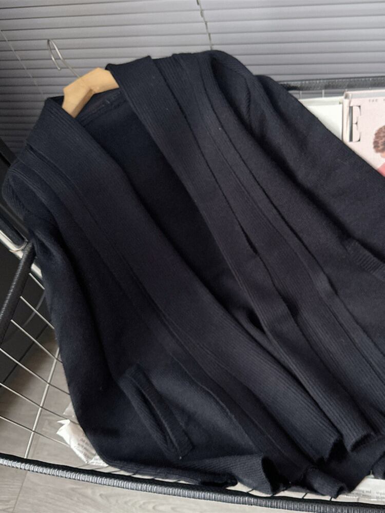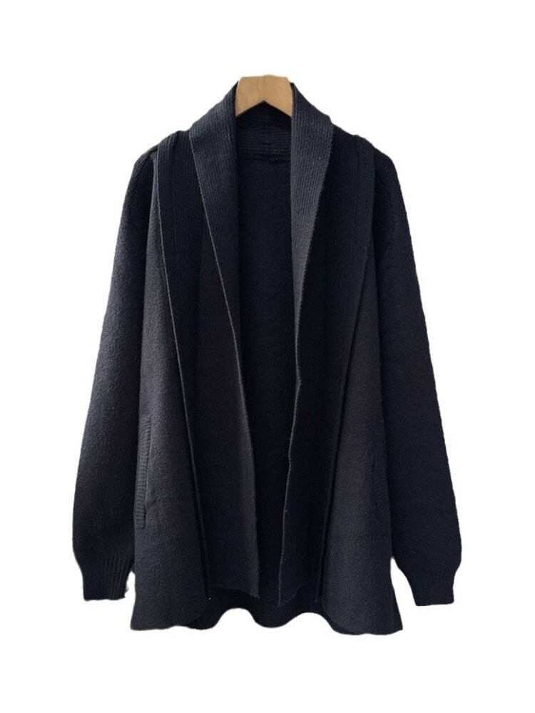 [EWQ] ブラック ポケット カーディガン ニット セーター レディース オーバーサイズ 厚手 防寒着 コート 秋冬 A6290 オータム 秋物 ウィンター 冬物