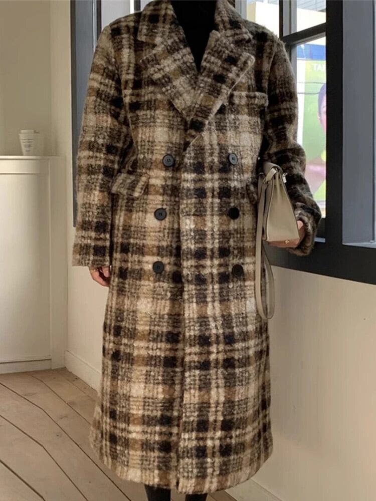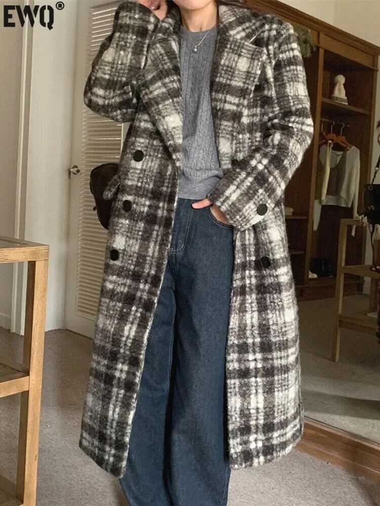 [EWQ] オールマッチスーツ襟ダブルブレストコントラストカラーチェック柄ウールジャケットコート秋冬 16U6615 オータム 秋物 ウィンター 冬物