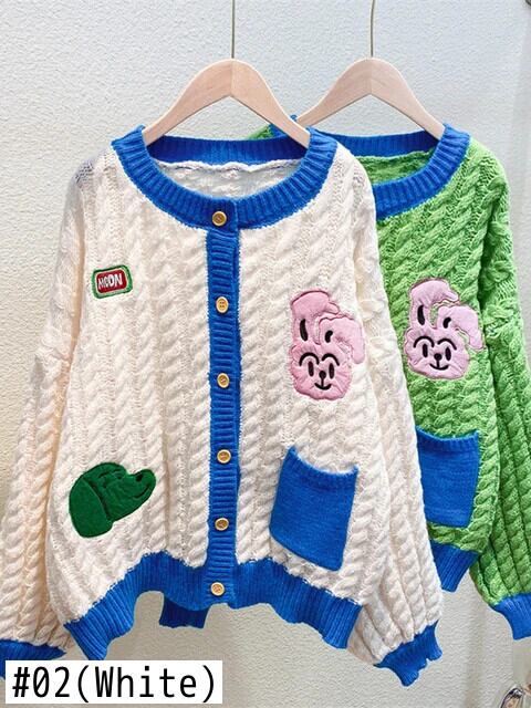 [EWQ] ese ツイストストライプ シングルブレスト セーター コート カーディガン 漫画 Oネック スプライス レディース 秋冬 オータム 秋物 ウィンター 冬物