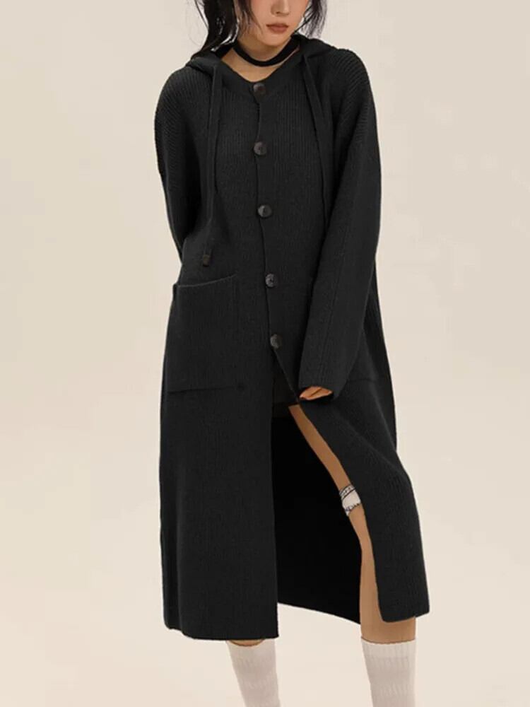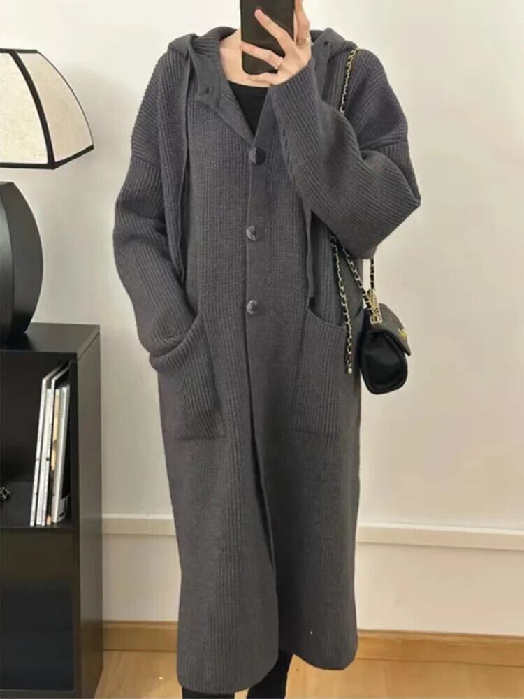 [EWQ] 秋冬フード付きニットカーディガンセーター厚く暖かいシングルブレスト巾着アウター 16U6573 オータム 秋物 ウィンター 冬物