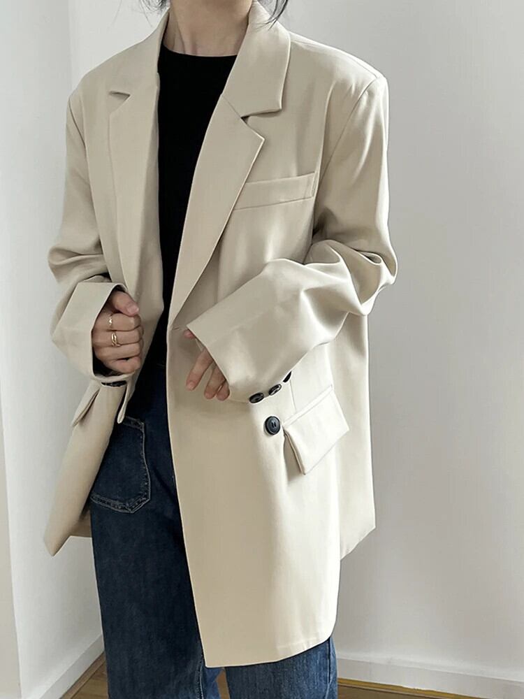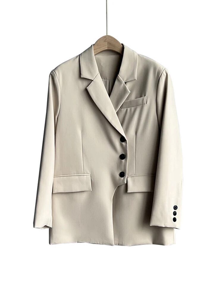 [EWQ] 不規則シングルブレストブレザーコート長袖ポケットスーツジャケット夏潮ブレザー ロング サマー 夏物