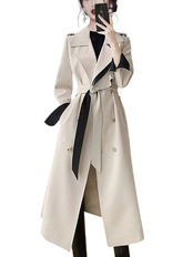 [EWQ] 気質ウエストバンド スリムラペル ダブルブレスト レディース ウインドブレーカー トレンチ コート ジャケット 秋冬 6U6134 オータム 秋物 ウィンター 冬物