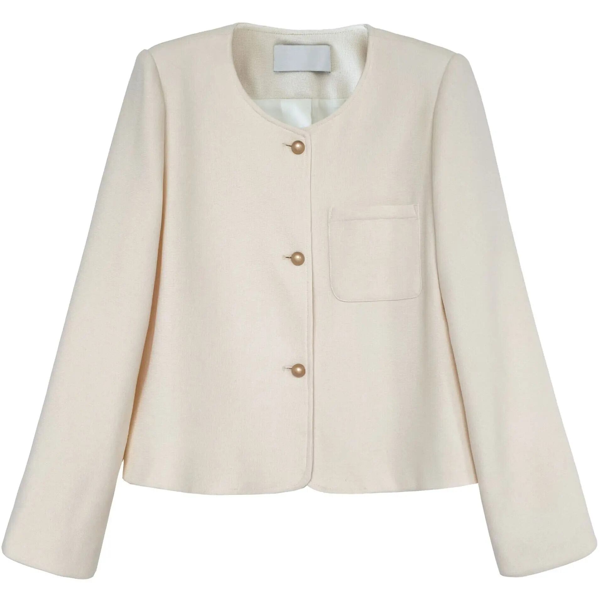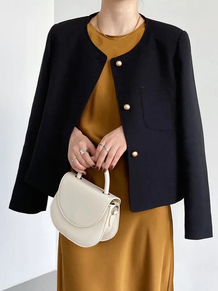 [EWQ] シックシングルブレスト ツイード ジャケット 秋 オフィス レディース トップス アウター 16Y284 オータム 秋物 会社 学校 通勤や通学にも