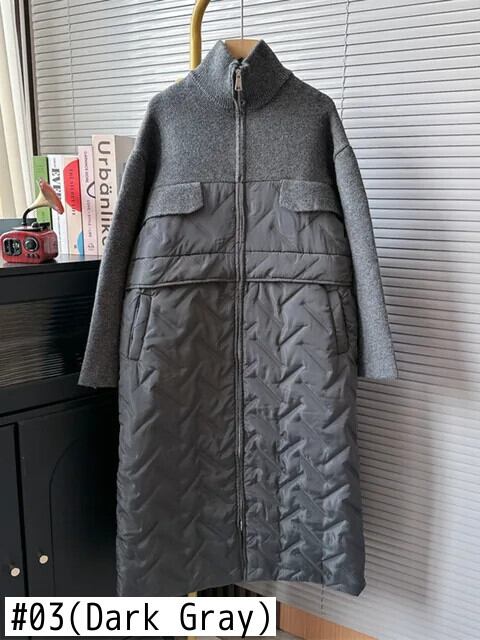 [EWQ] ネックポケットレディースニットセータースプライシング綿パッド入りコート秋冬厚手ダウンパーカーオーバーコート 6U6096 コットン オータム 秋物 ウィンター 冬物