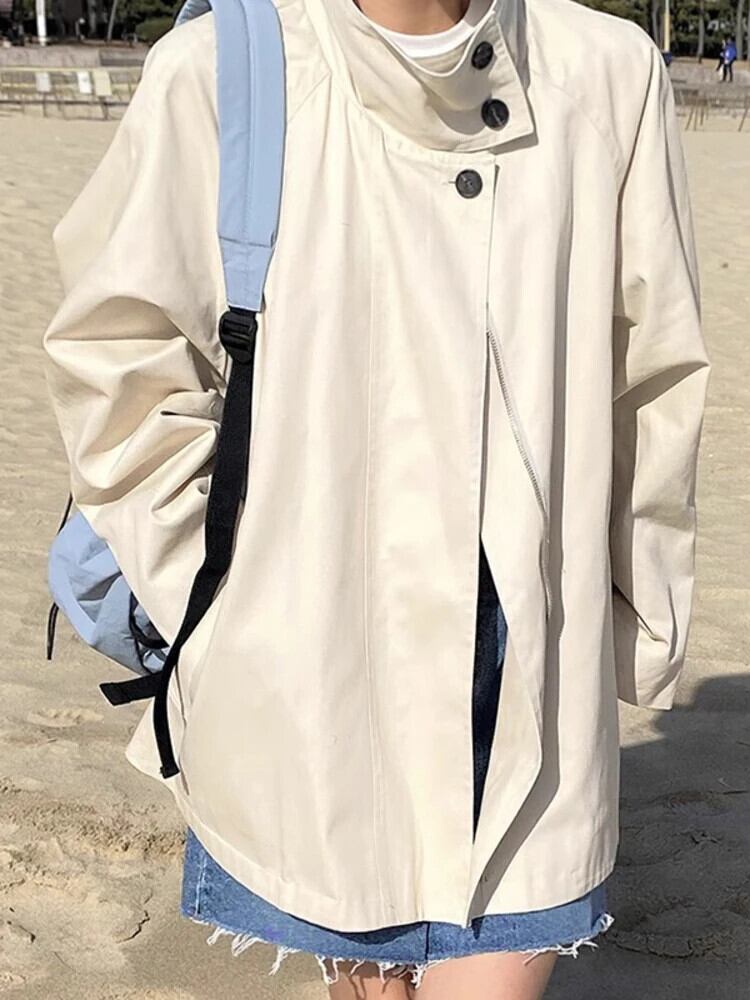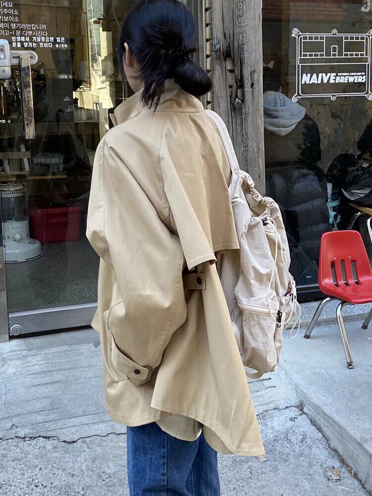 [EWQ] スタンド大ポケットジャケットルーズ長袖カーキジャケットコート秋冬潮 16U4161 ロング オータム 秋物 ウィンター 冬物