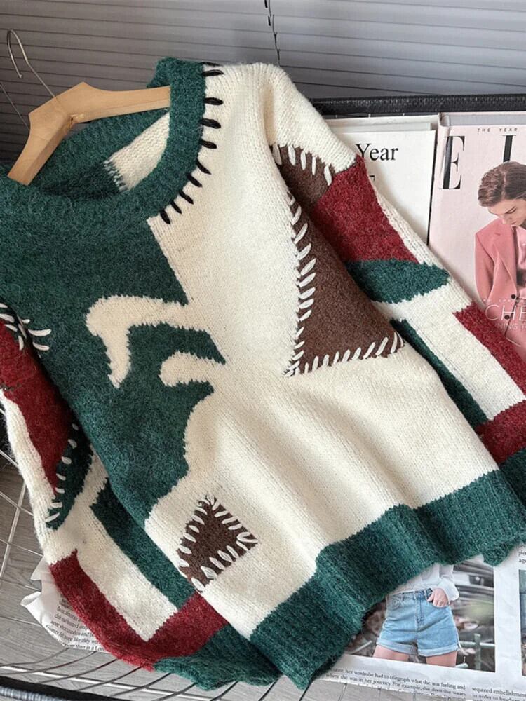 [EWQ] Oネック プルオーバー ニット セーター レディース ゆったり 厚手 暖かい きれいめ トップス ジャンパー 秋冬 16U6384 オータム 秋物 ウィンター 冬物