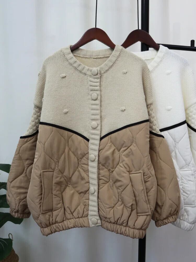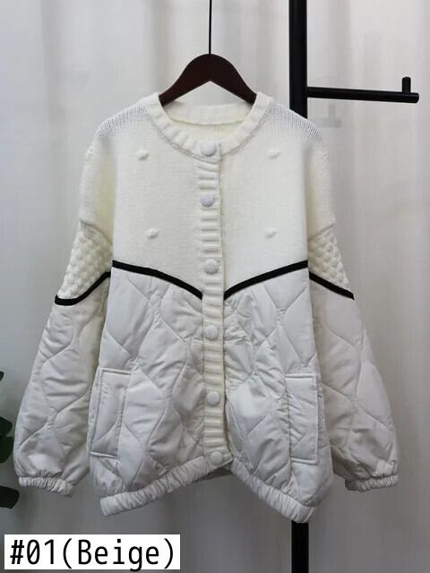 [EWQ] O ネック シングルブレスト レディース ニット カーディガン セーター ジャケット スプライス コットン 中綿 コート 秋冬 16U5987 オータム 秋物 ウィンター 冬物 Oネック