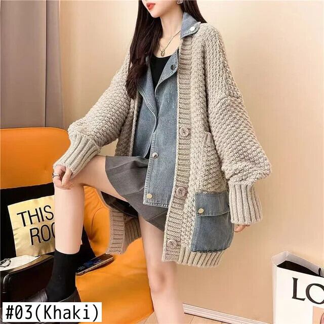 【EWQ】シック大きいサイズ アウター デニム ジャケット スプライシング 婦人 秋冬 セーター トップス オータム 秋物 ウィンター 冬物
