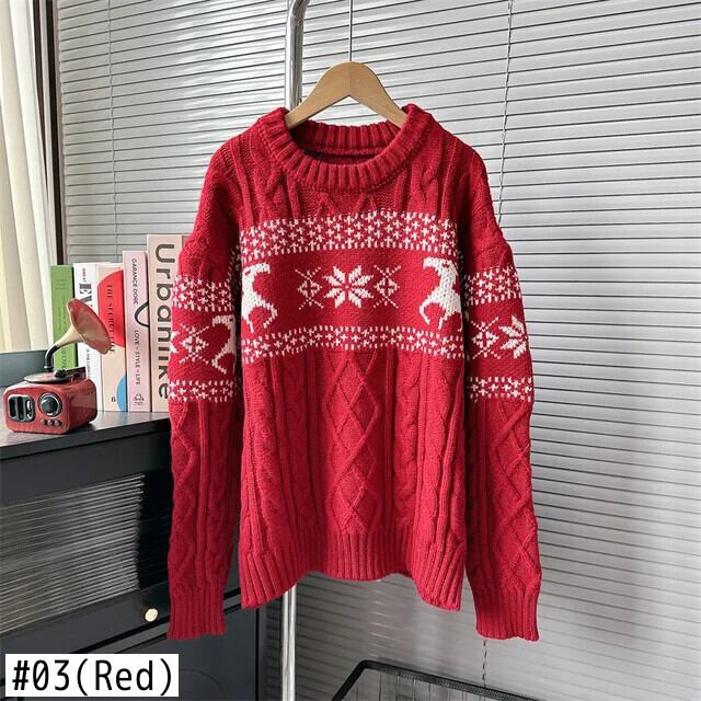 [EWQ] O ネック厚手暖かい今年クリスマスニットプルオーバーセータートップス秋冬 16U6007 オータム 秋物 ウィンター 冬物 Oネック