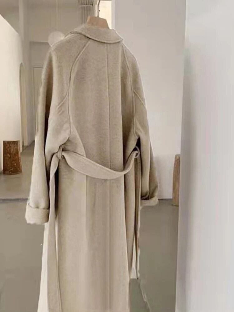 [EWQ] ウール コート ダブルブレスト ベルト付き 長袖 暖かい ウール アウター オーバーコート 秋冬 潮 16U5282 ロング オータム 秋物 ウィンター 冬物 ハーネス