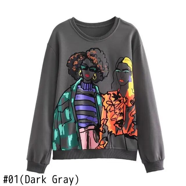 [EWQ] 長袖 O ネック キャラクター 漫画柄 レディース プルオーバー プリント トレーナー 秋 春 16U6026 ロング スプリング 春物 オータム 秋物 Oネック