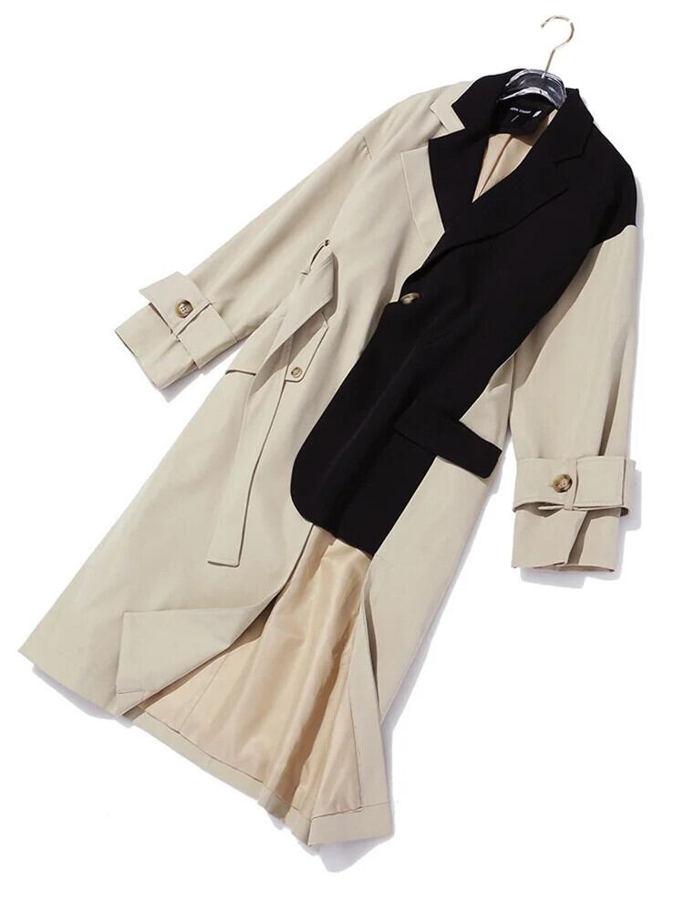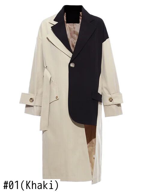 [EWQ] 秋トレンドラペルコントラストステッチゆったり薄手カーキ長袖ウインドブレーカー春 ロング スプリング 春物 オータム 秋物