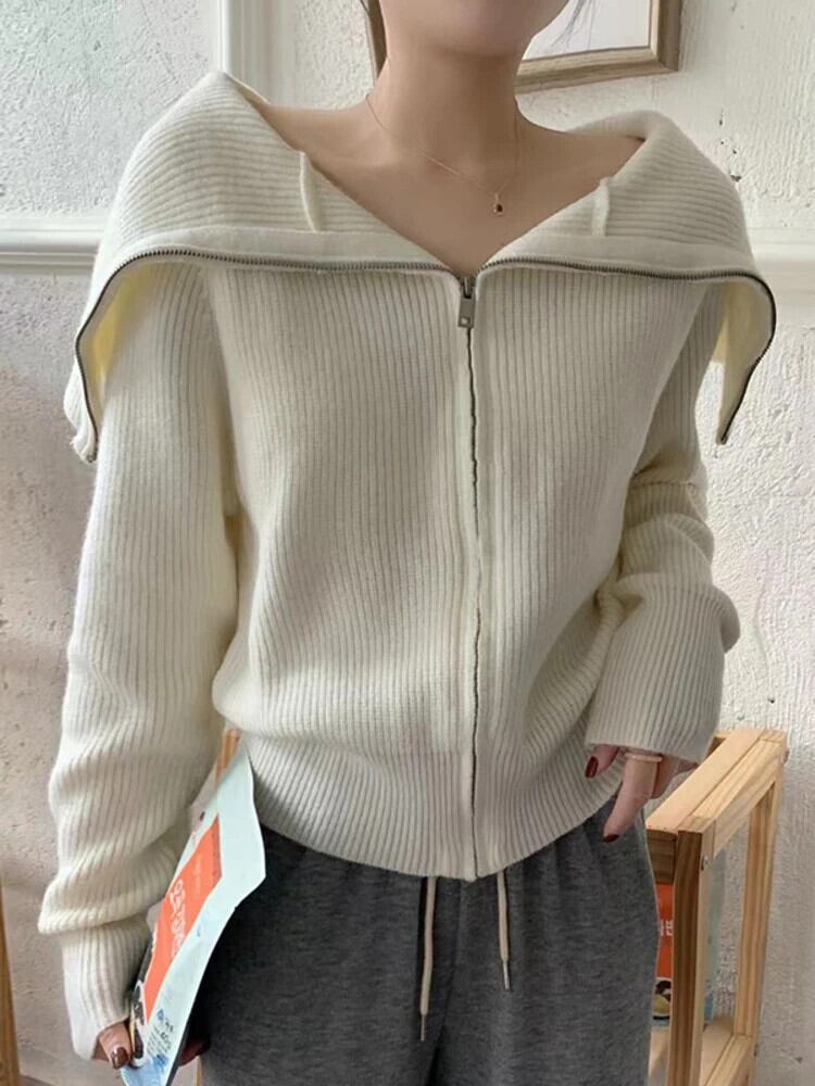 [EWQ] 大きラペルニットジッパーカーディガンセーターオールマッチ長袖暖かい秋冬 6U6666 ロング オータム 秋物 ウィンター 冬物