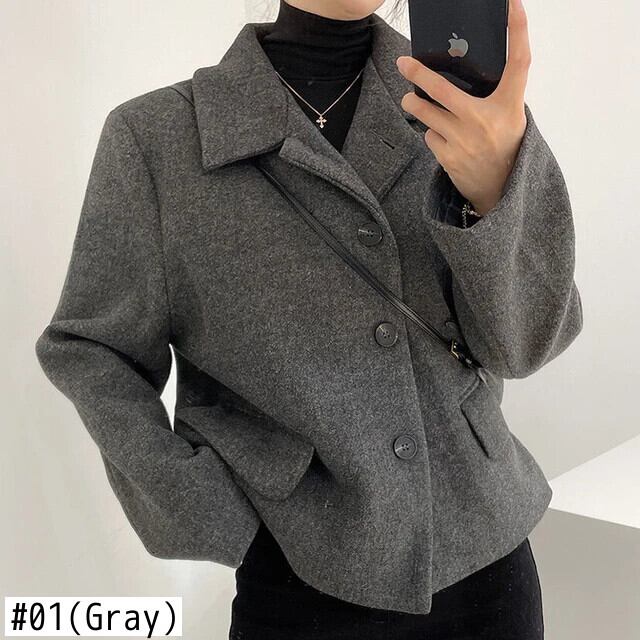 [EWQ] シンプルラペルシングルブレストオールマッチショートウールコートポケット長袖暖かいジャケット秋冬 16U6742 ロング オータム 秋物 ウィンター 冬物