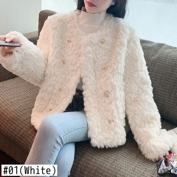[EWQ] O ネック長袖ポケットダブルブレストラムウール厚みあるベルベット暖かいレディースコートジャケット秋冬 16U6117 ロング オータム 秋物 ウィンター 冬物 Oネック