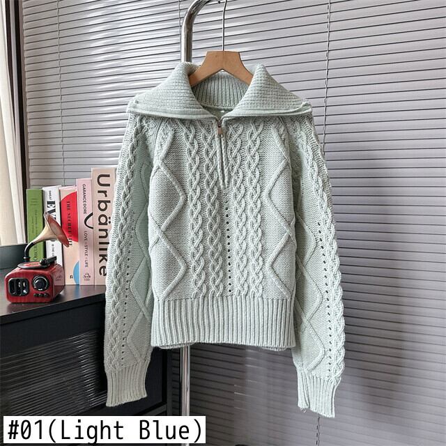 [EWQ] ラペル ハーフジッパー プルオーバー ニット セーター レディース ツイスト ストライプ ニット ジャンパー 秋冬 16U6811 オータム 秋物 ウィンター 冬物