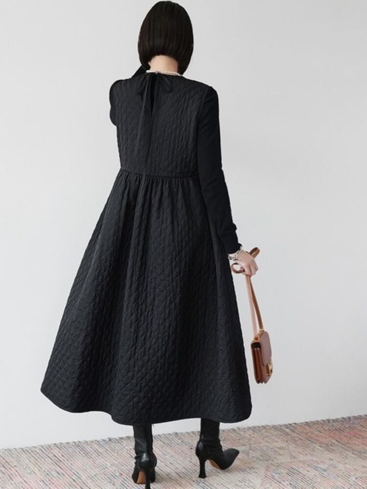 [EWQ] ノースリーブバックレースアップダイヤモンドチェック柄綿パッド入りベストロングボトムドレス冬秋 16U6859 コットン オータム 秋物 ウィンター 冬物
