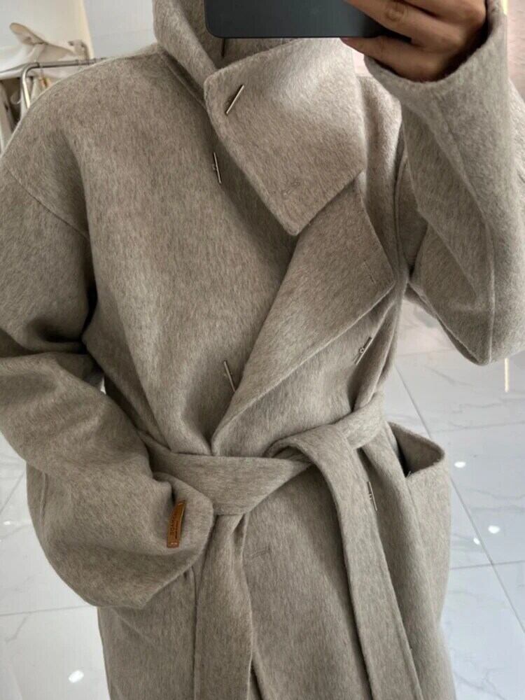 [EWQ] 包帯付きウールコートパッチポケットルーズぬいぐるみ両面ウールオーバーコート秋冬 16U5362 オータム 秋物 ウィンター 冬物