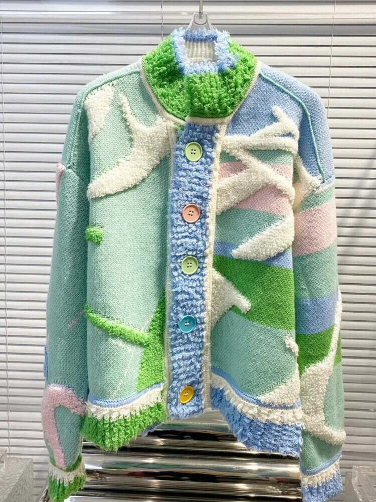 [EWQ] 甘くてかわいいレディース暖かいニットコート シングルブレスト グリーン 冬 秋 アウター U6425 大人ガーリー スウィート キュート カジュアル オータム 秋物 ウィンター 冬物