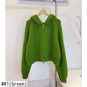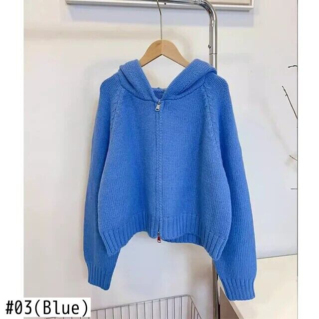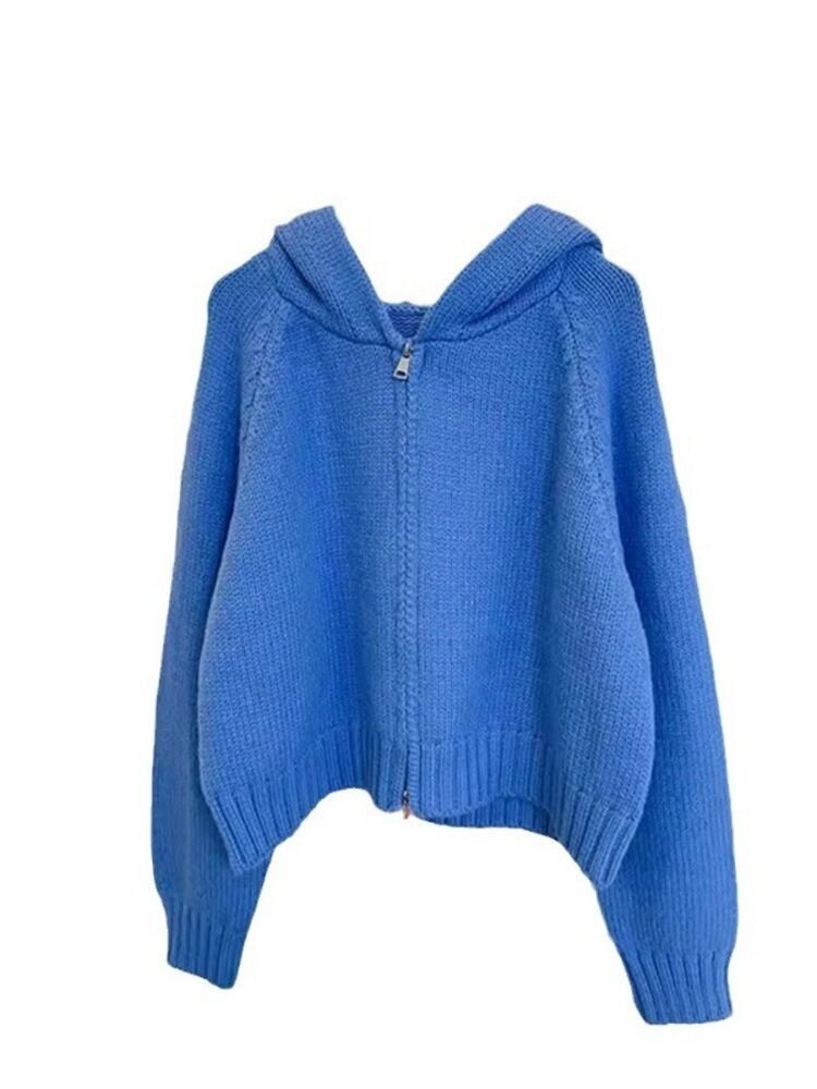 [EWQ] ダブル ジッパー フード付き ニット カーディガン セーター ジャケット 厚手 暖かい レディース 無地 トップス 秋冬 16U6809 オータム 秋物 ウィンター 冬物 ソリッドカラー