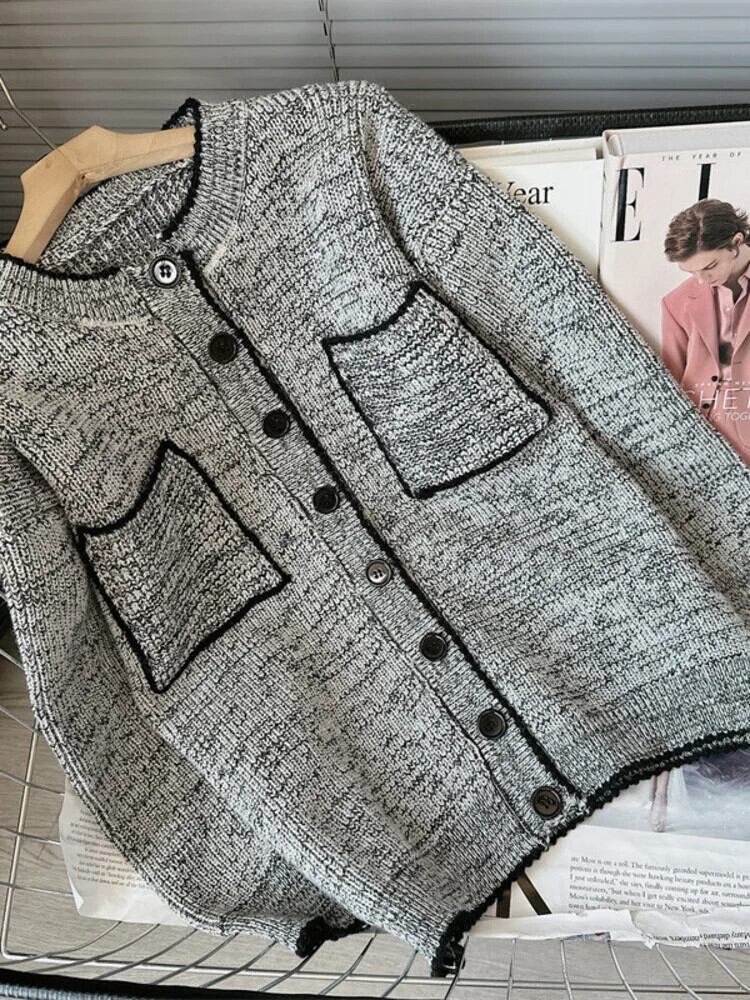 [EWQ] ルーズニットジャケット冬ダブルポケットコントラストスプライシング長袖セーターコート秋トップ 16U5095 ロング オータム 秋物 ウィンター 冬物