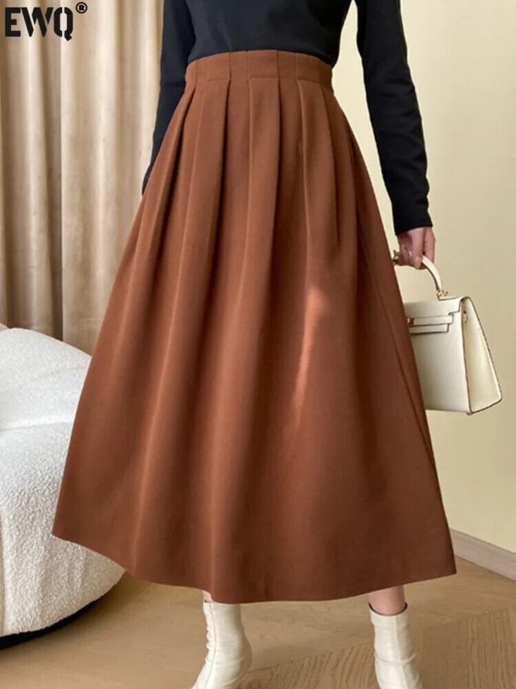 [EWQ] 気質ソリッドカラージッパー花つぼみプリーツウエストスーツウール A ラインハーフスカートレディースボトム 16U6576 Aライン フラワーデザイン