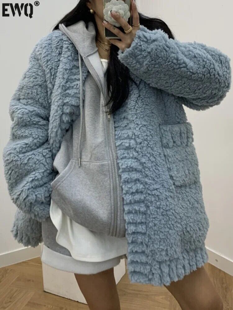 【EWQ】Vネック オールマッチ 長袖 厚みある 暖かい ラムウール コート ジャケット アウター 秋冬 16U6547 ロング オータム 秋物 ウィンター 冬物