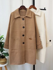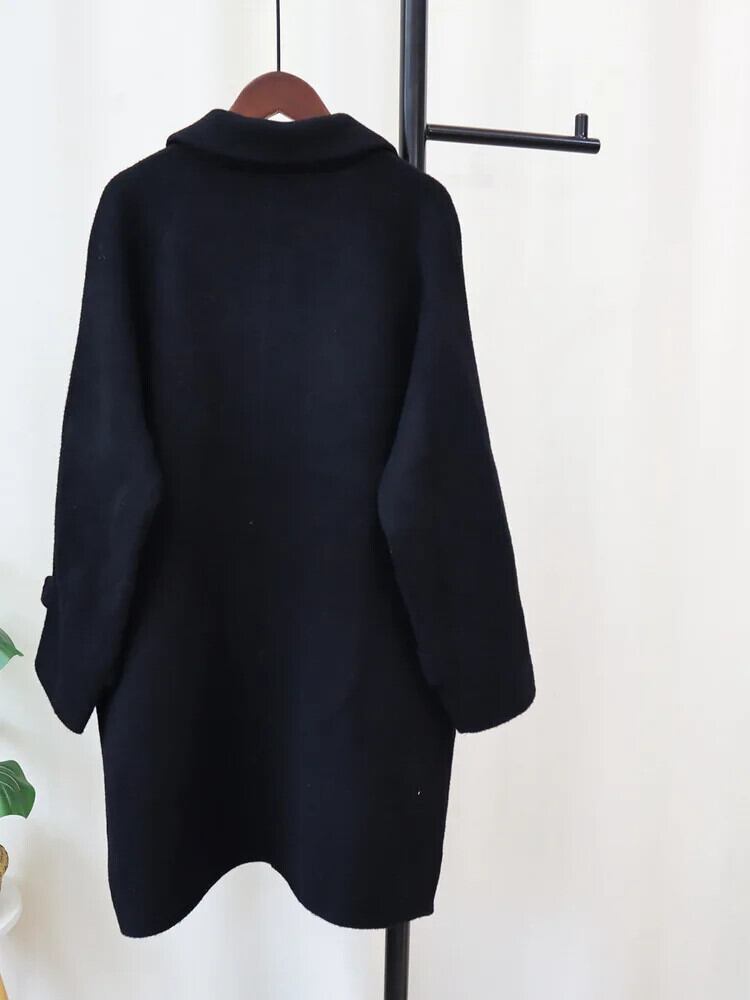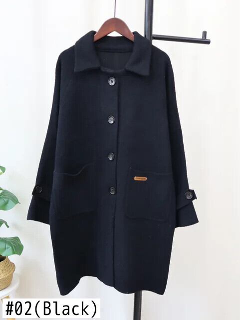 [EWQ] ラペル シングルブレスト ポケット 両面カーディガン ウール コート レディース 長袖 ジャケット 秋冬 16U6775 ロング オータム 秋物 ウィンター 冬物