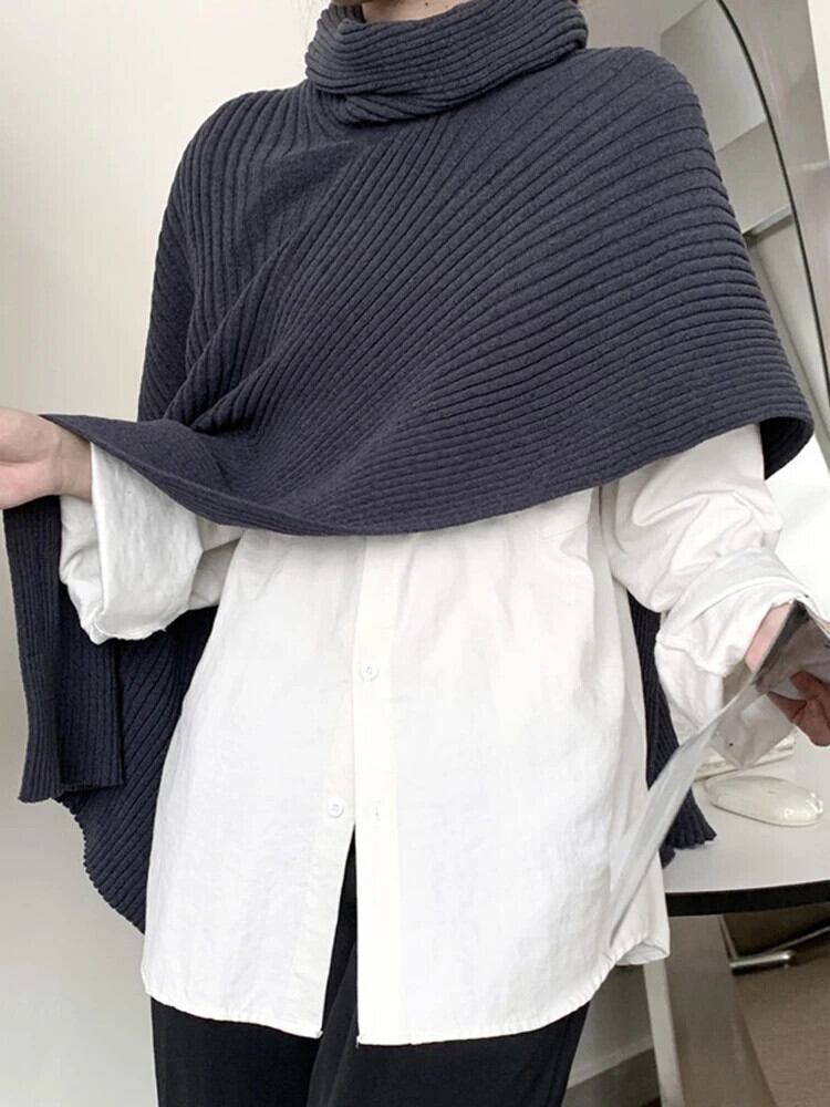 [EWQ] 不規則ノースリーブショールスカーフセータールーズタートルネックプルオーバーニットトップ秋冬 16U4362 オータム 秋物 ウィンター 冬物