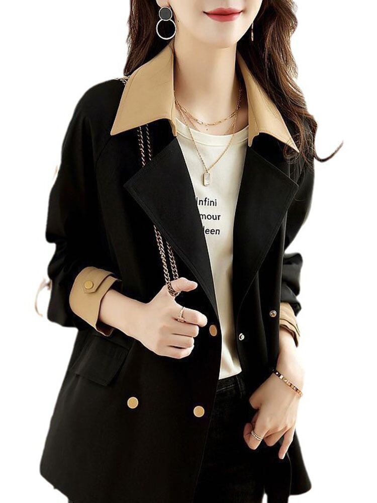 [EWQ] ダブルブレストコントラストカラーオールマッチラペルカラーショートコートウインドブレーカートップ冬秋 16U6423 オータム 秋物 ウィンター 冬物