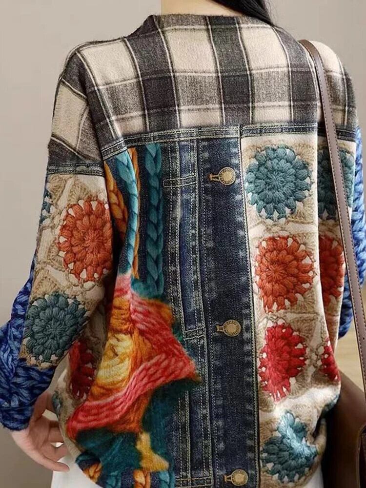 [EWQ] 秋冬 O ネック ボタン ミンク フリース プルオーバー ニット プリント セーター レディース 長袖 トップス 16U6433 ロング オータム 秋物 ウィンター 冬物 Oネック